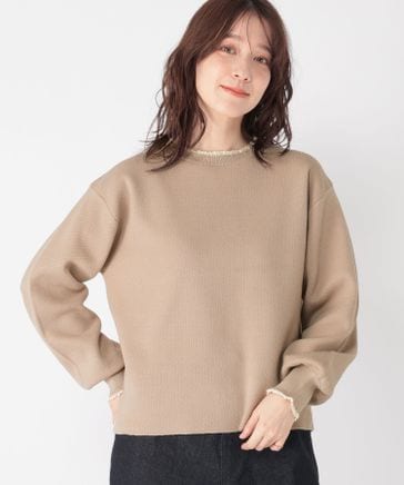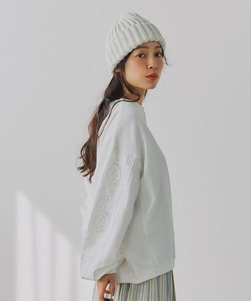 【新色追加】袖シアー切り替えクルーネックプルオーバー