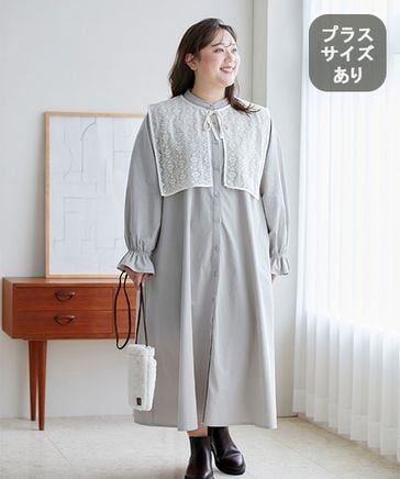 【WEB限定/おさむちゃんコラボ】レース襟×キャンディスリーブワンピ[プラスサイズあり]