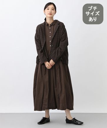 ストレッチリネン裾ギャザーワンピース[プチ・プラスサイズあり]