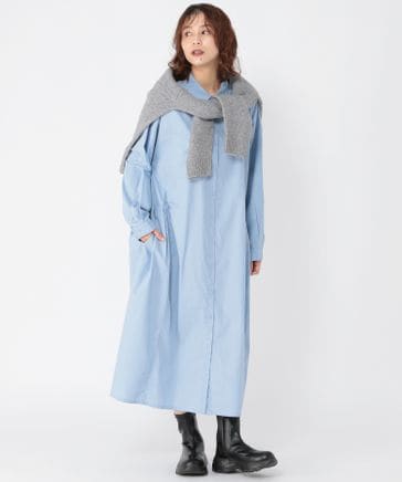 コットンバックドロストシャツワンピース