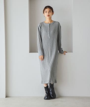 ヘンリーネックカットリブワンピース