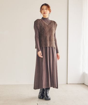 シャギーベスト×ニットワンピース