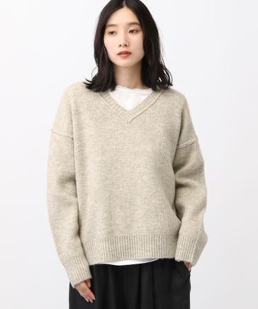 《natural by clip/マシンウォッシャブル》7ゲージウール混畦Vネックプルオーバー