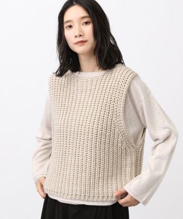 《カラー予約/natural by clip/マシンウォッシュ》7ゲージニット×バテンプルオーバー