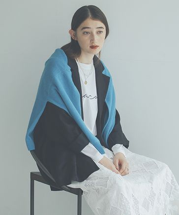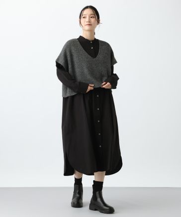 《natural by clip》7ゲージニットベスト×シャツワンピース