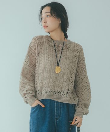 《新色入荷/natural by clip/マシンウォッシュ》7ゲージニット×バテンプルオーバー