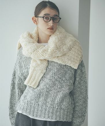 《新色入荷/natural by clip/マシンウォッシュ》7ゲージニット×バテンプルオーバー