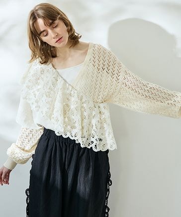 《natural by clip》ダブルフロントクロシェ風ニットカーディガン