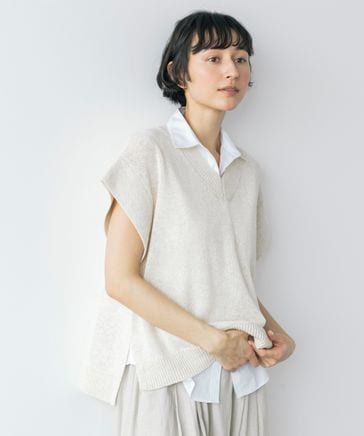 《natural by clip》フレンチリネンベスト×ワンピース[プチサイズあり]