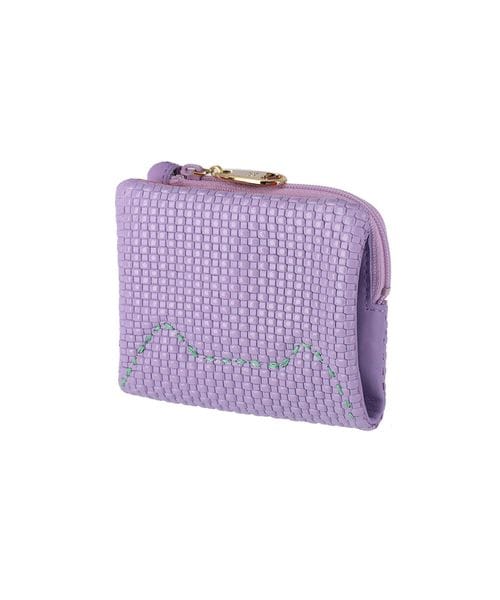 エンボスメッシュ 2つ折り財布 スリムタイプ 猫ステッチ/57891