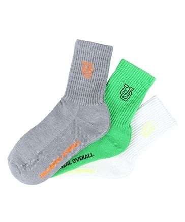 【UNIVERSAL OVERALL】サイドUOロゴ 3Pレディースクルーソックス