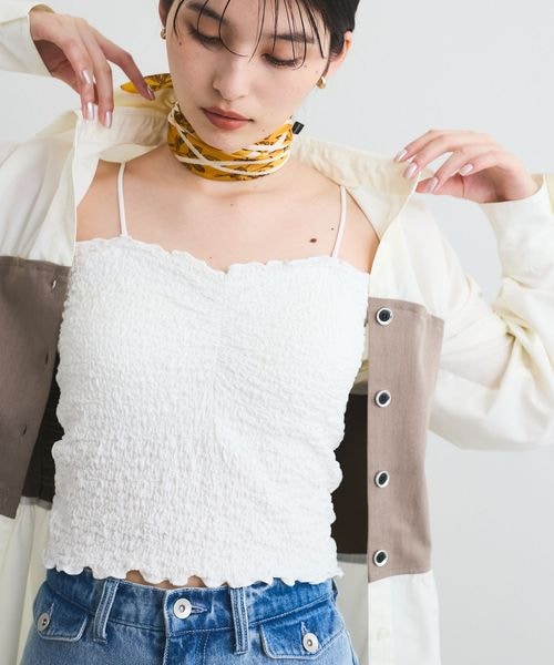 【洗える】シャーリングキャミソール