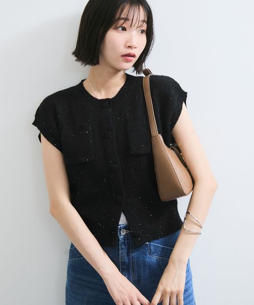 くるみ釦ニットトップスカーデ/洗える