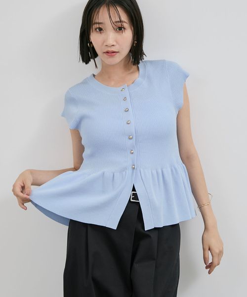 【アンチピリング/洗える】美SMARTショートスリーブペプラムニット