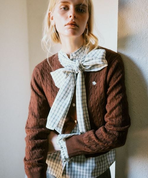【POLO BCS】VIS別注ミニケーブルノーカラーニットカーディガン