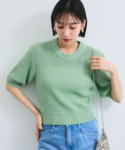 【洗える】アイレットブークレコンパクトニット