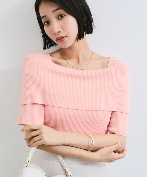 【アンチピリング/UVケア/洗える】オフショルハーフスリーブニット