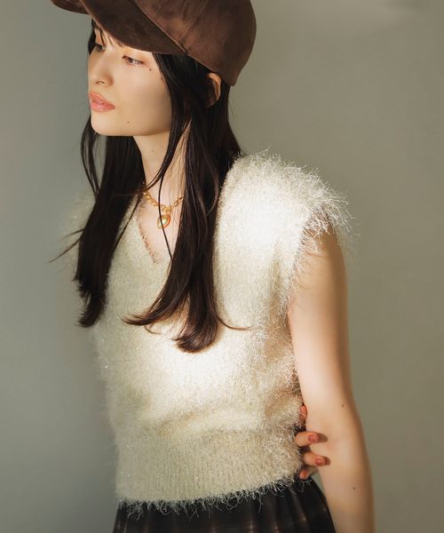 【WEB限定サイズMT/着丈が選べる】【洗える】フェザーヤーンニットベスト