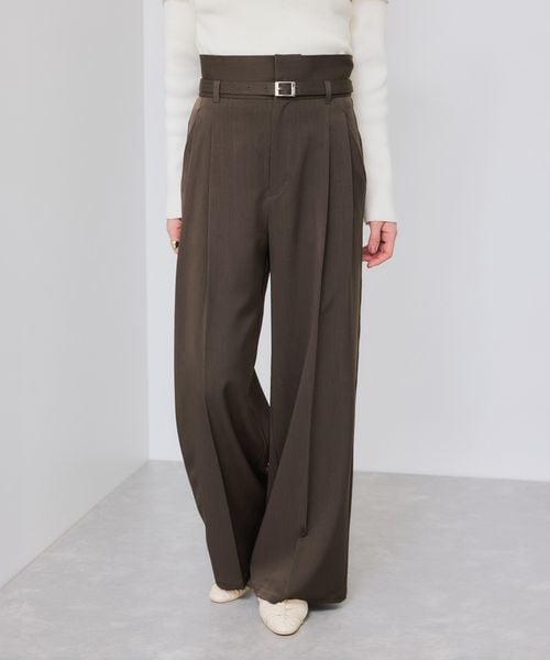 ベルトディテールタックワイドパンツ/イージーケア