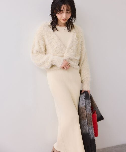 ねじりショートトップス付きロングニットワンピース/イージーケア