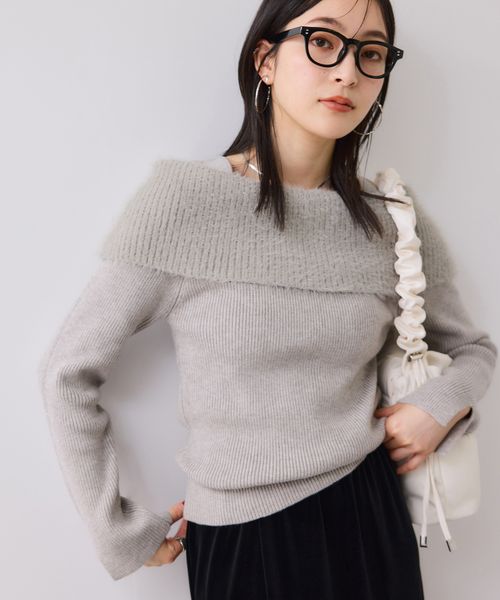 フェザーヤーンオフショルもちもちリブニット/イージーケア