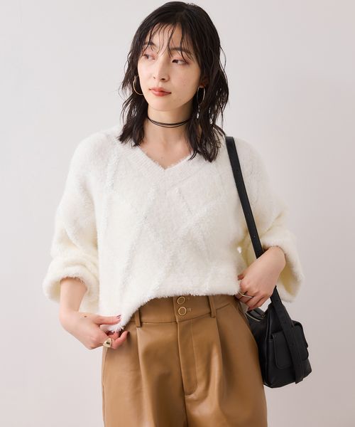 アーガイルフェザーニット/2WAY・イージーケア