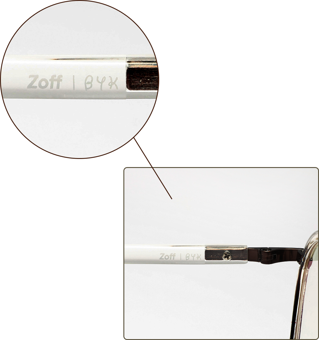 テンプルの内側にはバヤコオリジナルロゴ